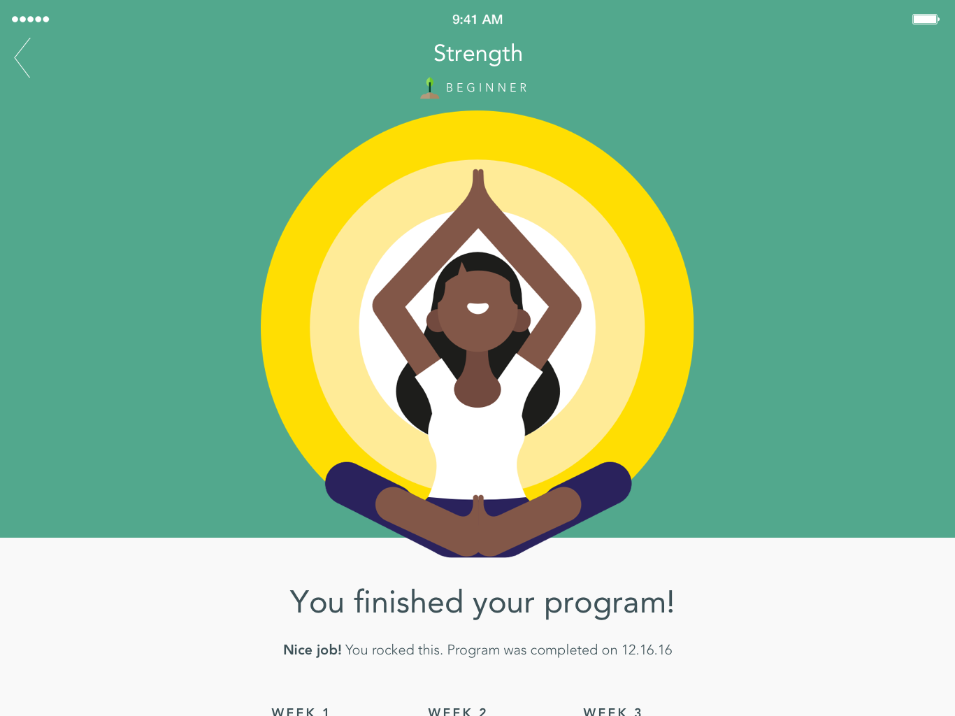 Programs was another retention play feature, wherein users could schedule multi-week yoga classes that could pull them through trial.